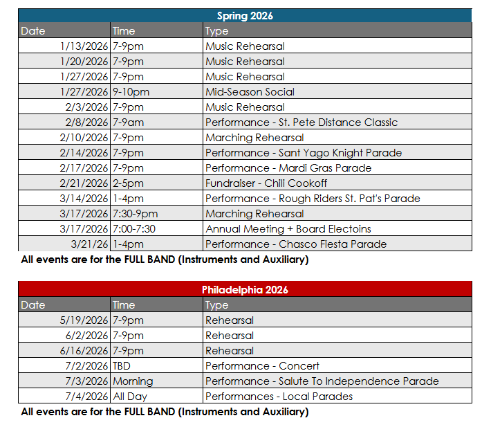 - – This calendar will always show you the most up to date information we have on rehearsals and performances.