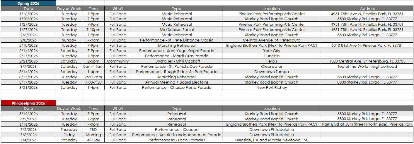 - – This calendar will always show you the most up to date information we have on rehearsals and performances.